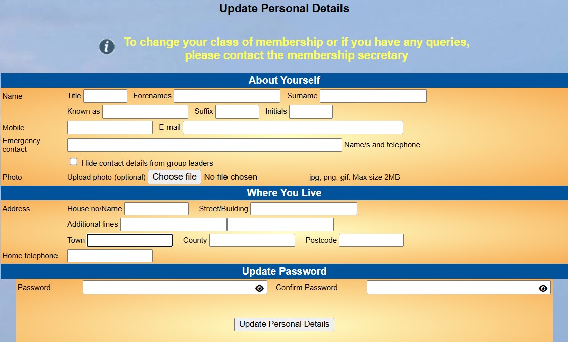 Members have the ability to see and update their personal information that we hold securely on the system for membership purposes. If you change anything we will send you an email with the changes you have made. If you do not see the email, check your spam folder.